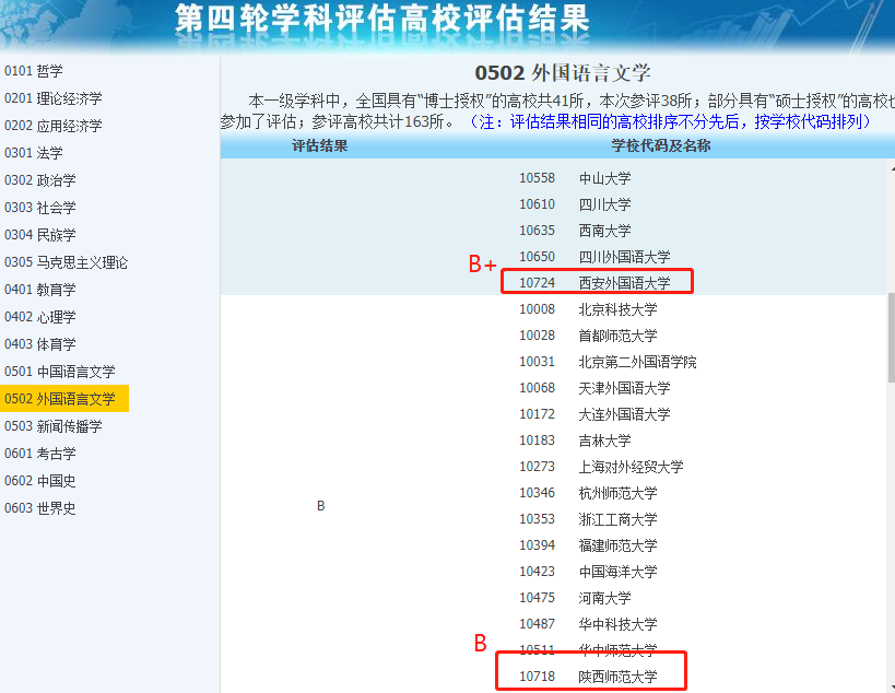 在高校選擇上從優勢學科上來看西外和陜師大高校更有優勢。且在全國學科評估上: