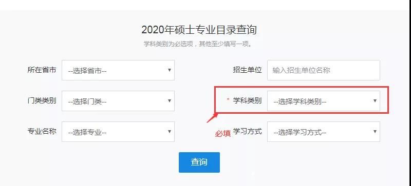 點(diǎn)擊碩士目錄,學(xué)科類別為必填,可以根據(jù)地區(qū)、專業(yè)來選學(xué)校,也可以根據(jù)學(xué)校來選擇開設(shè)的專業(yè)。