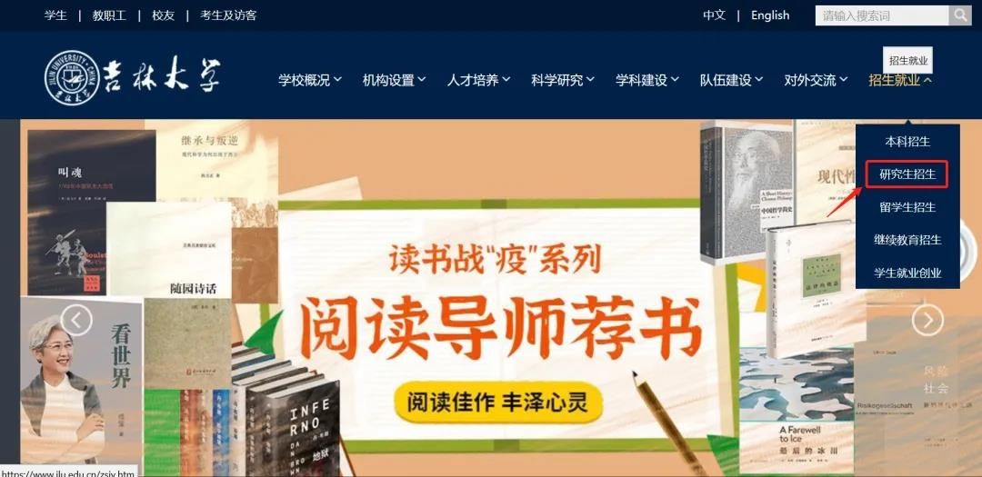 一般學(xué)校的官網(wǎng)中也會(huì)發(fā)布招生信息和公告,以吉林大學(xué)為例,點(diǎn)擊院校官網(wǎng)中“招生就業(yè)”中的“研究生招生”,里面對(duì)于招生信息、專業(yè)概況、考試科目、計(jì)劃招生人數(shù)等都會(huì)有詳細(xì)的介紹。