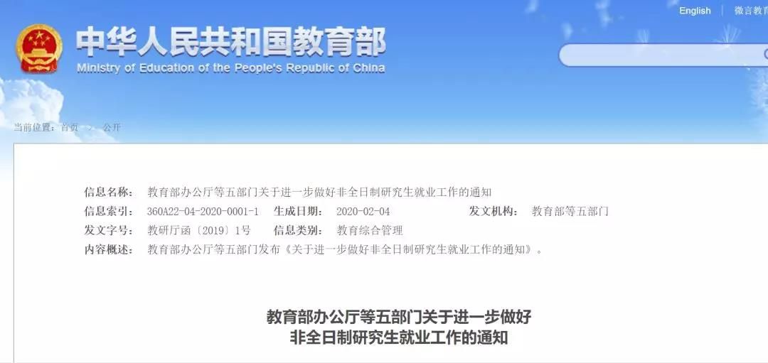 教研廳函〔2019〕1號各省、自治區、直轄市黨委組織部、教育廳(教委)、人力資源社會保障廳(局)、公安廳(局)、國資委,新疆生產建設兵團黨委組織部、教育局、人力資源社會保障局、公安局、國資委,中央和國家機關各部委、各人民團體組織人事部門,各中央企業,部屬各高等學校、部省合建各高等學校:發展非全日制研究生教育,是促進我國學習型社會建設、構建服務全民終身學習教育體系的重要舉措,有利于加快培養高層次創新型、復合型、應用型人才。為促進非全日制研究生教育健康發展,進一步做好非全日制研究生就業工作,現就有關事項通知如下。
