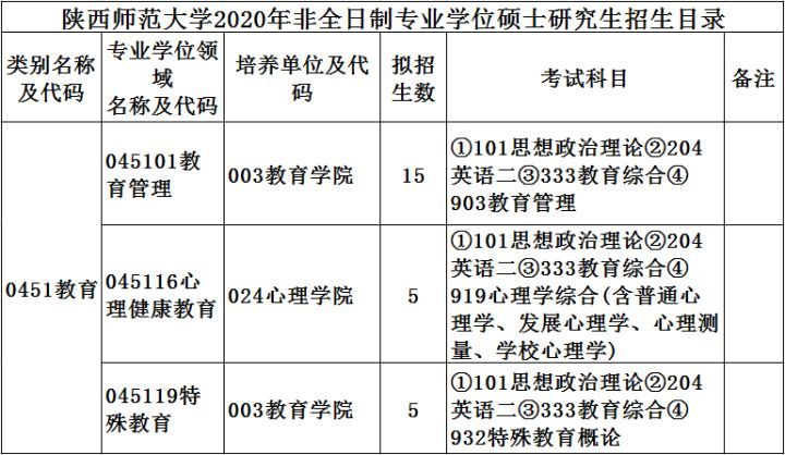 2020年陜西師范大學教育學考研非全日制專碩招生目錄
