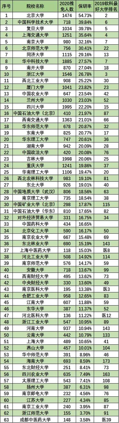 注1:保研率=2020屆推免人數/2018年畢業生人數*100%;