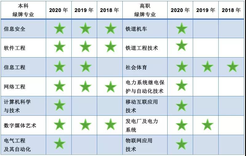 本科、高職“綠牌”專業(yè)