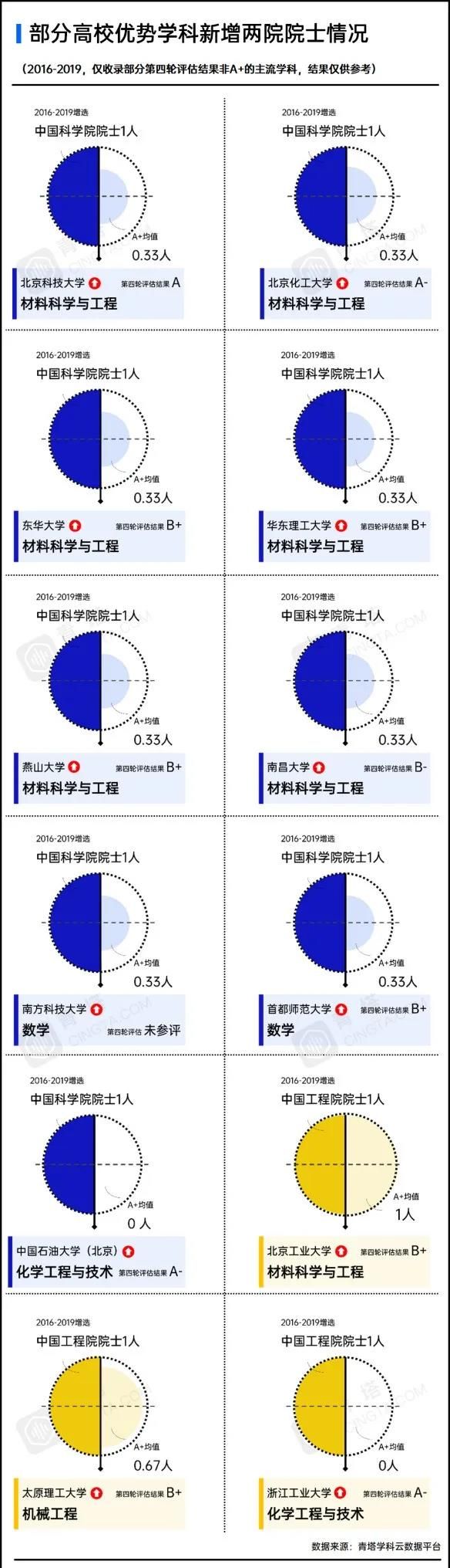 中國(guó)石油大學(xué)(北京)和浙江工業(yè)大學(xué)的化學(xué)工程與技術(shù)學(xué)科則分別增選了1名科學(xué)院院士和工程院院士;太原理工大學(xué)則在機(jī)械工程領(lǐng)域增選1位中國(guó)工程院院士。