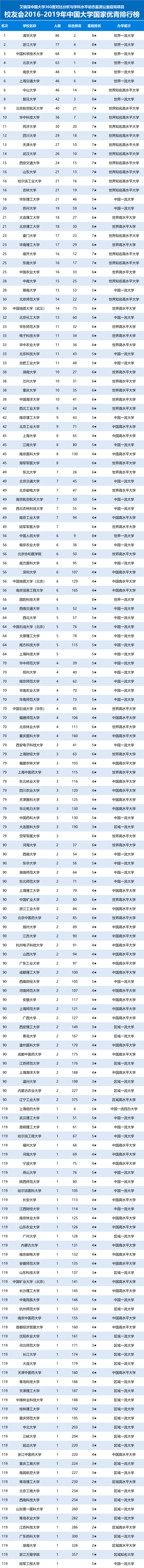 附:2016-2019中國(guó)大學(xué)國(guó)家杰青排行榜