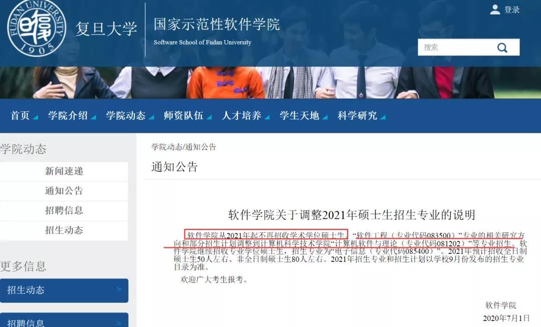 復(fù)旦大學(xué)的軟件學(xué)院自2021年起不再接收學(xué)術(shù)型碩士。