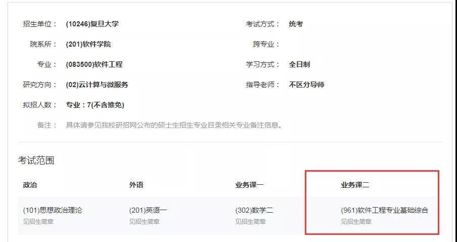 從公告中顯示的情況來看,軟件學(xué)院的軟件工程學(xué)碩妥妥的就是停止招生了,就算是其研究方向調(diào)整到計算機科學(xué)與技術(shù)學(xué)院相關(guān)專業(yè)招生,本質(zhì)上專業(yè)代碼就已經(jīng)發(fā)生了更改,這已經(jīng)不能算作僅僅是換了一個學(xué)院進行招生的情況。這里專業(yè)代碼的更換,大多數(shù)時候都會涉及到專業(yè)課的更改。盡管今年最新的招生專業(yè)目錄還沒有出來,官網(wǎng)顯示會在9月份才發(fā)布,但是參考20年的專業(yè)目錄,這兩個學(xué)院的相關(guān)專業(yè)初試專業(yè)課考試科目確實有所差別。軟件學(xué)院之前開設(shè)的軟件工程學(xué)碩專業(yè),專業(yè)課考試科目為961軟件工程專業(yè)基礎(chǔ)綜合,且公共課中的數(shù)學(xué)是考數(shù)學(xué)二。