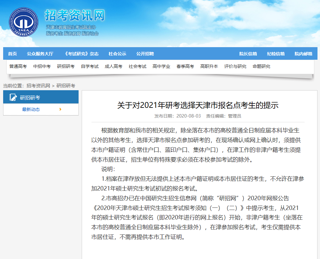 報考點的選擇,是每年考研大家都需要關注的問題。近日,天津市就公布了《關于對2021年研考選擇天津市報名點考生的提示》。