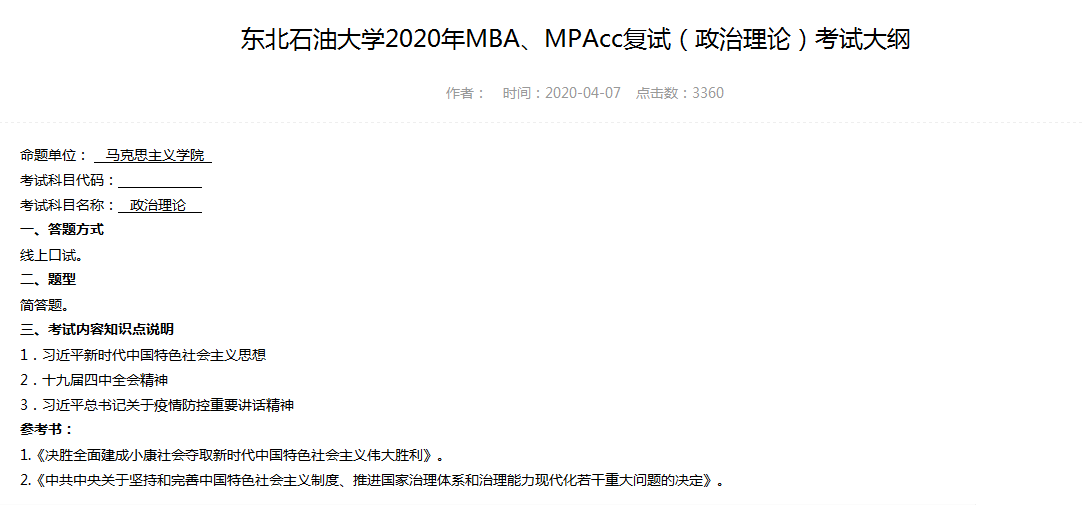 2020年MBA、MPAcc復試(政治理論)考試大綱