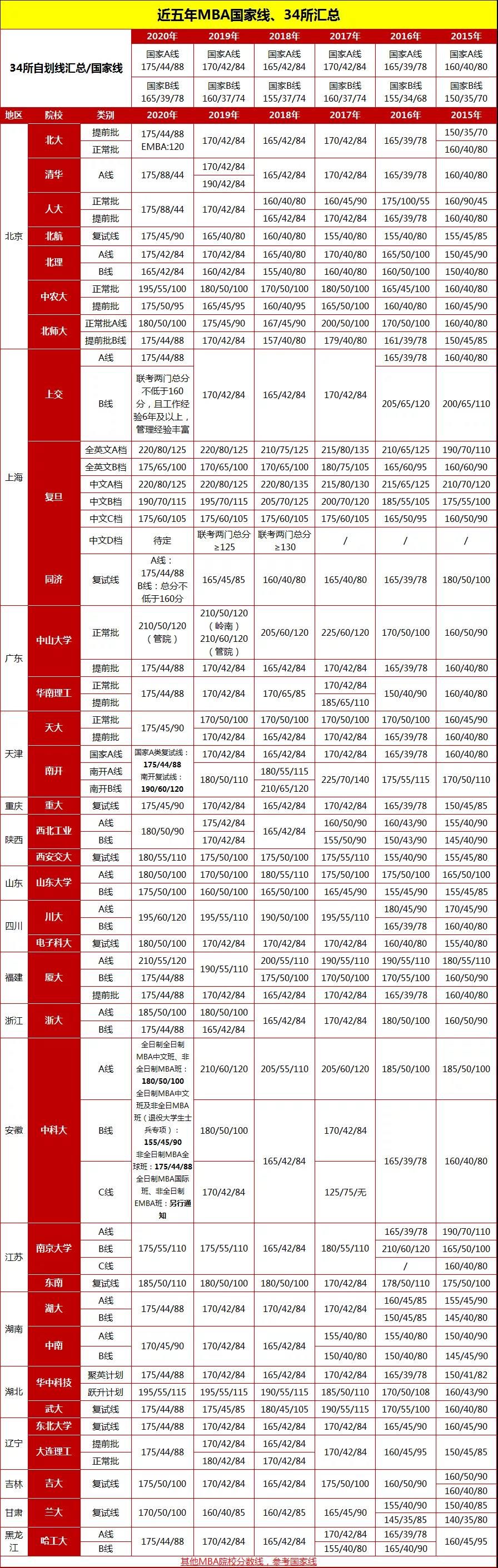 以上是小編為大家整理的“34所MBA2015-2020分數(shù)線匯總,21在職考研可參考”的相關(guān)內(nèi)容,希望對大家考研有所幫助!