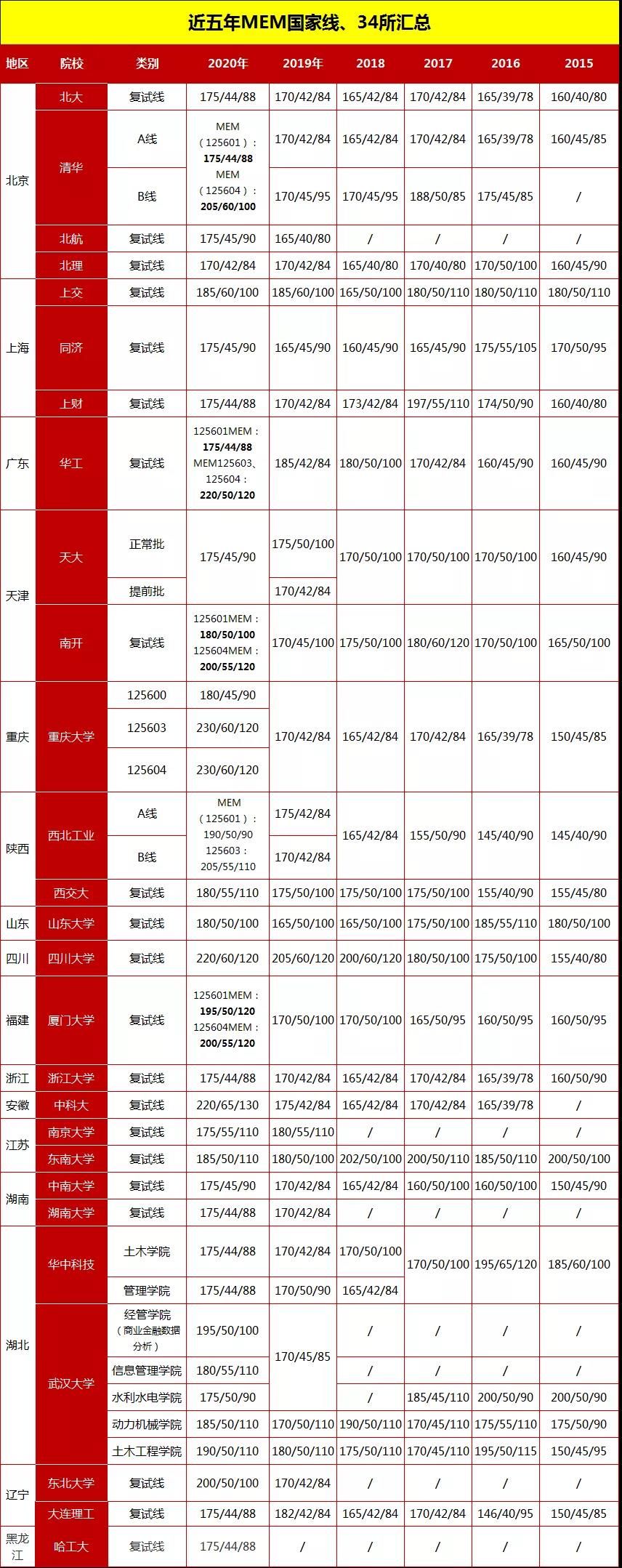 以上是小編為大家整理的“34所MEM2015-2020分數線匯總,21在職考研必看“的相關內容,如有疑問,可咨詢在線老師!