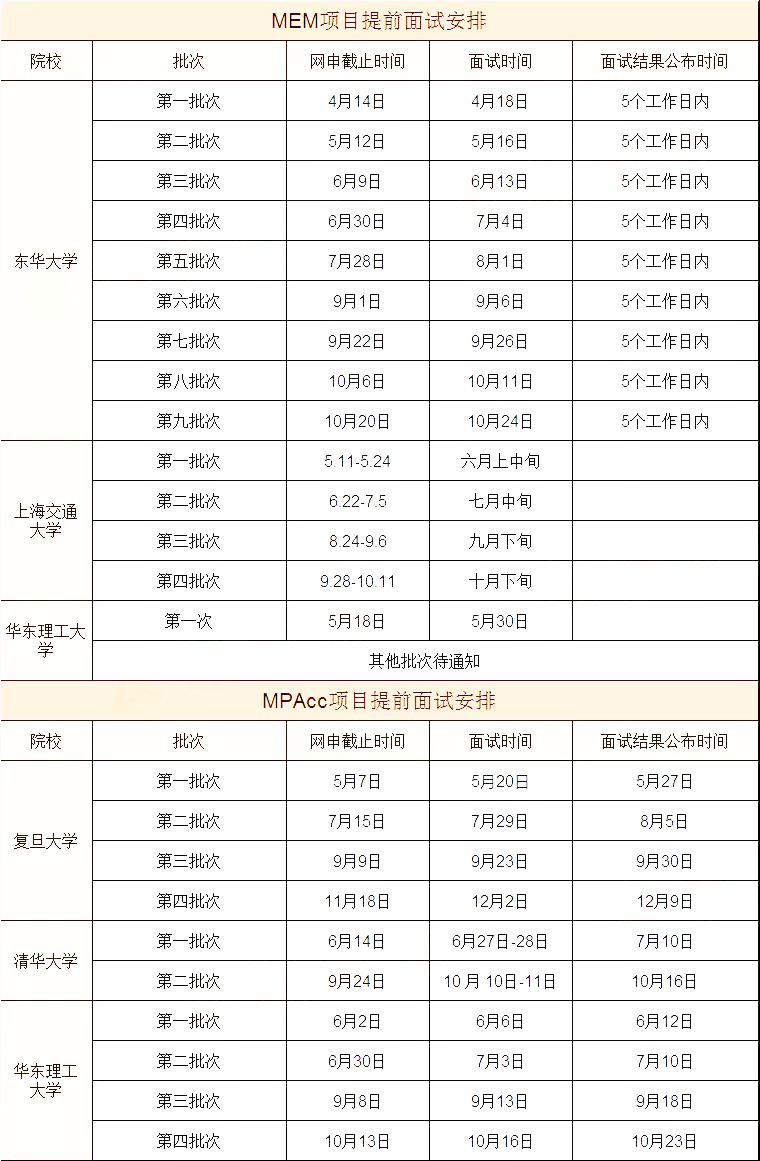 以上是小編為大家整理的“最新MBA/MEM/MPA提前面試信息匯總,21在職值得收藏”的相關內容,希望對大家考研有所幫助!