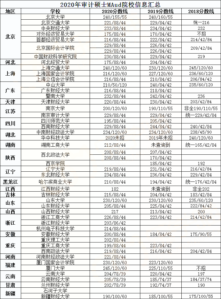 以上是小編為大家整理的“審計專碩2018-2020初試分數線匯總,21在職考研值得收藏”的相關內容,希望對大家考研有所幫助!